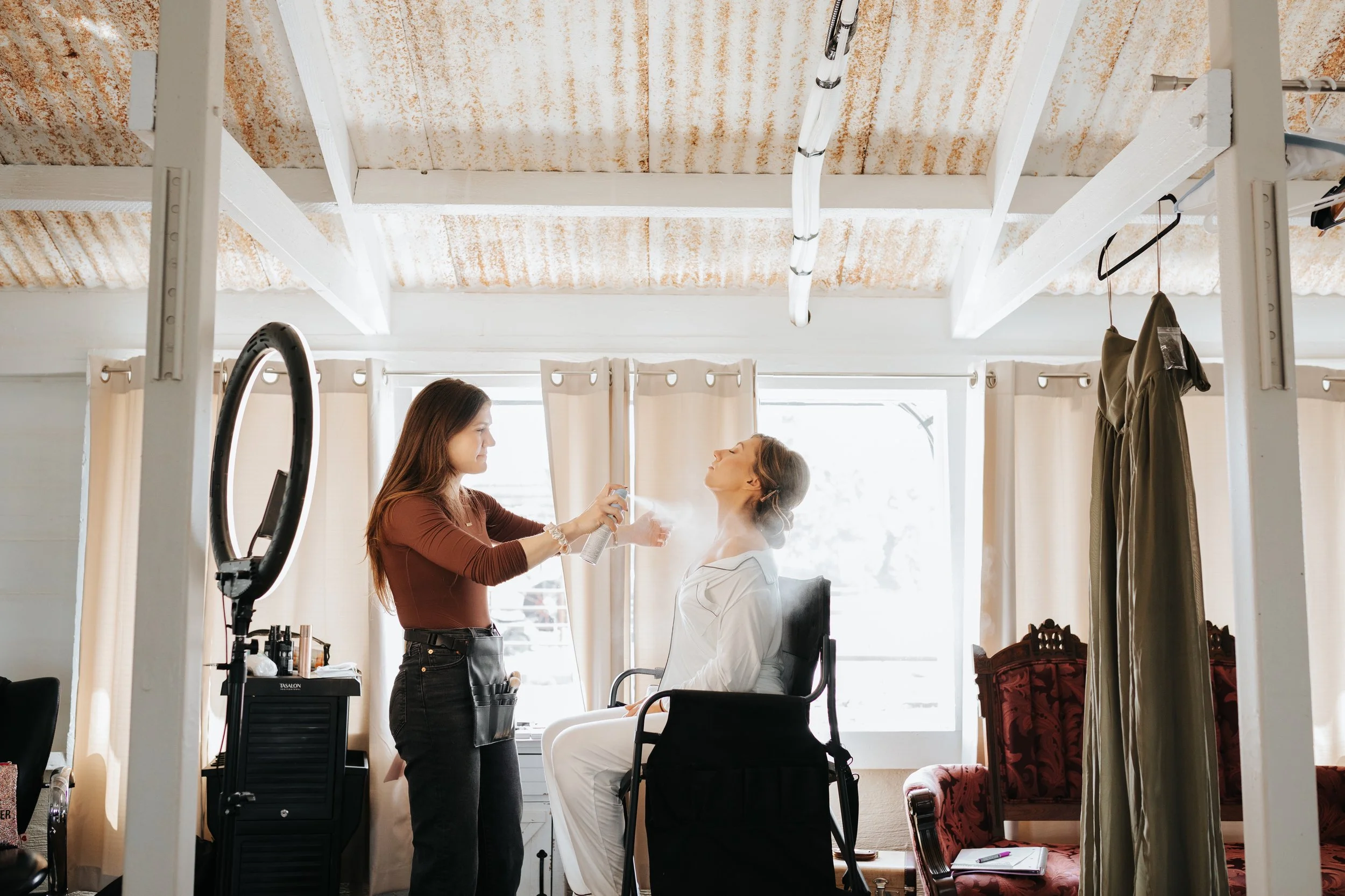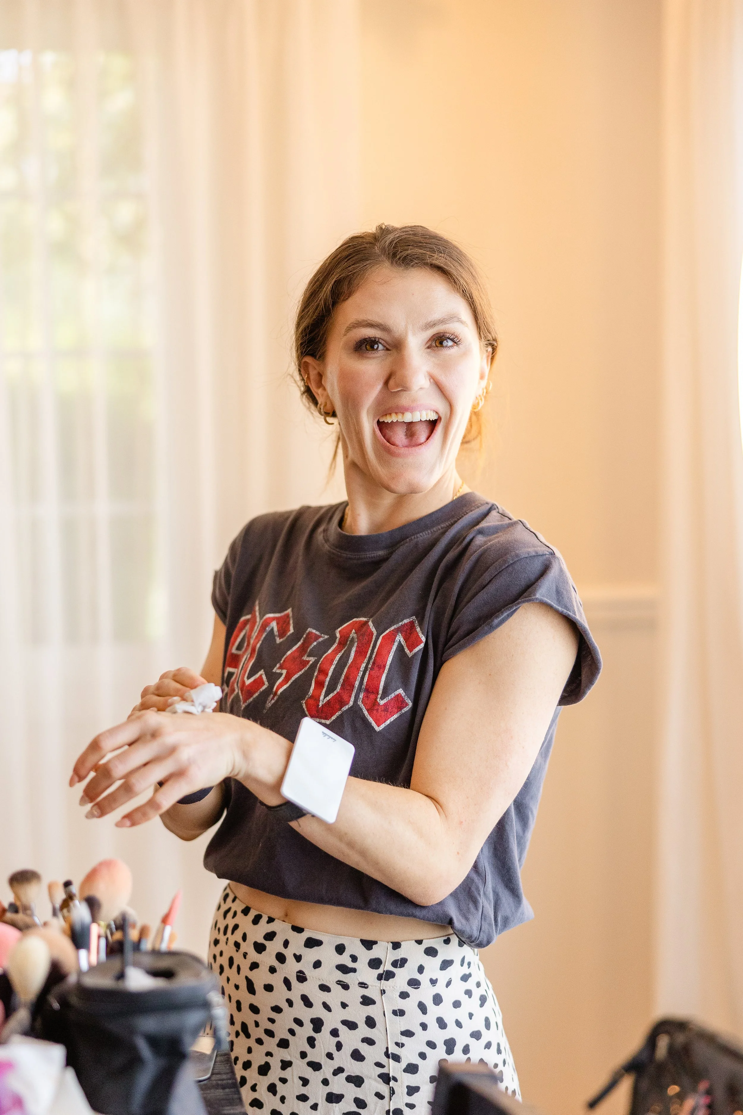 June 14, 2024 – my wedding day. After a long, unrushed shower I slipped on silk pajamas and listened to the waves crash. Then, a knock on the door! Folding chair, energy drink and makeup kit in hand, Annie arrives and the day finally begins. Patting drops of foundation on my warm skin, gently sweeping on shadow and dusting my cheeks with flushed color, the time in her hands is deeply calming. She holds up the mirror and all at once, I see a dream realized. “One of my favorite moments is after I’m done with a bride’s makeup. Those first seconds when they see it for the first time are magic. I attract a lot of brides that don’t wear much makeup in their day to day lives. I love giving them an enhanced version of themselves that they feel really confident and beautiful in.”